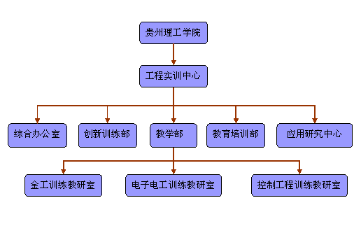 “中心”实行分管院长领导下的主任责任制,统筹调配使用实训教学资源,接受学校和实验设备处的直接管理。“中心”机构由:中心综合办公室、教学部(包括金工训练教研室、电子电工训练教研室、控制工程训练教研室)、创新训练部、教育培训部、应用研究中心等部门组成。